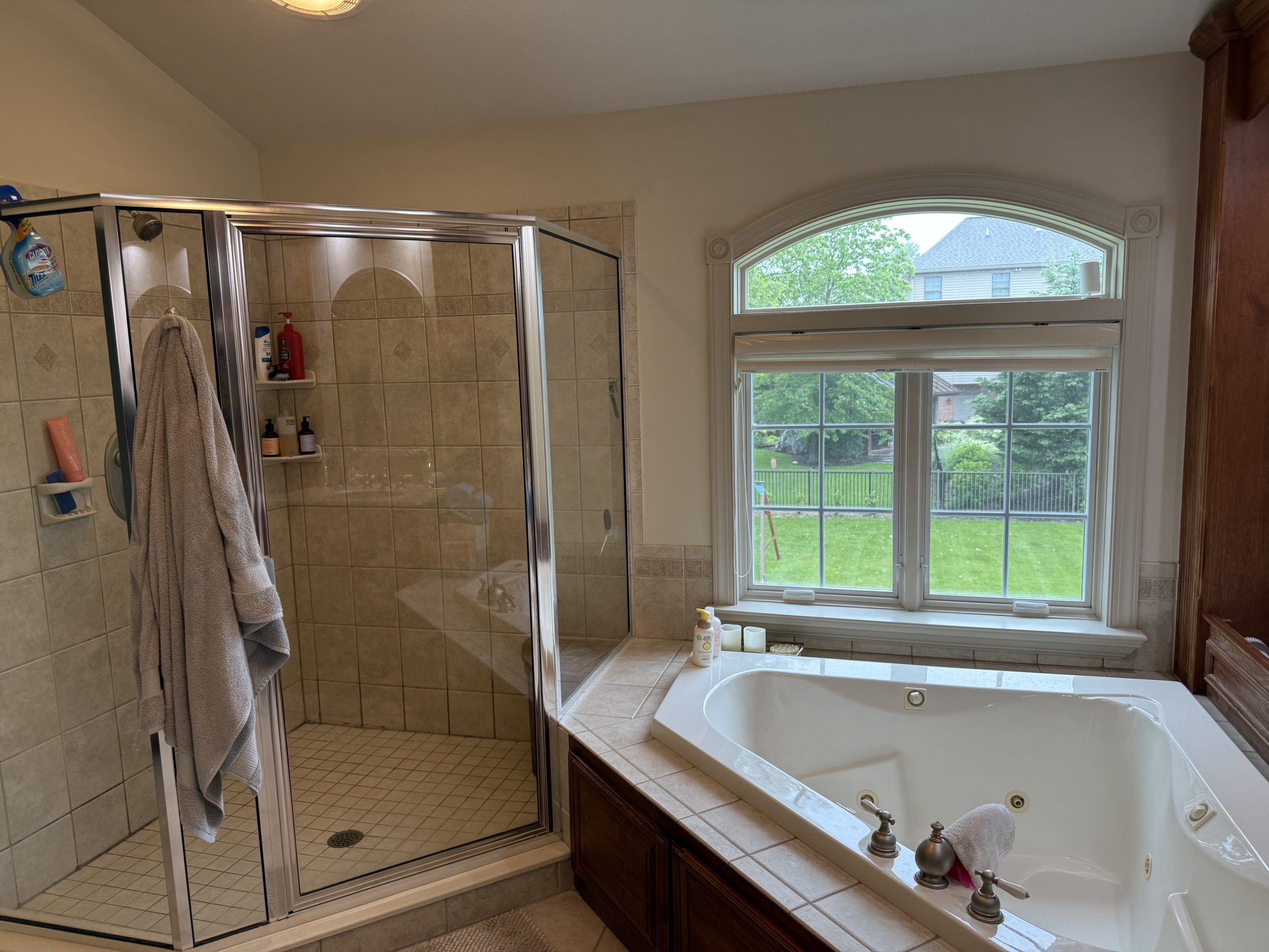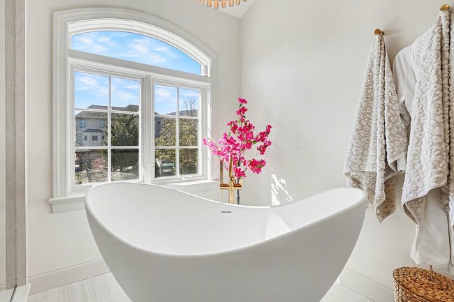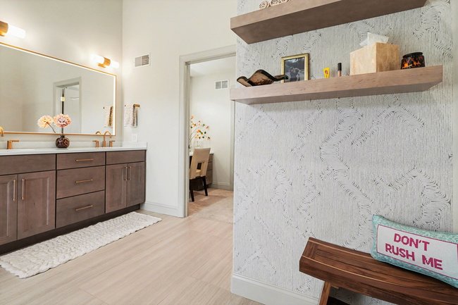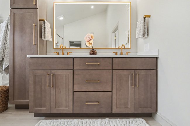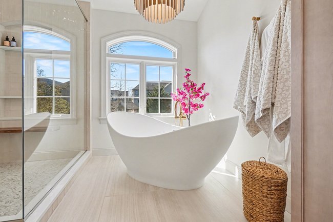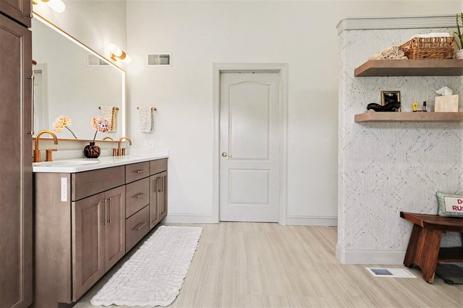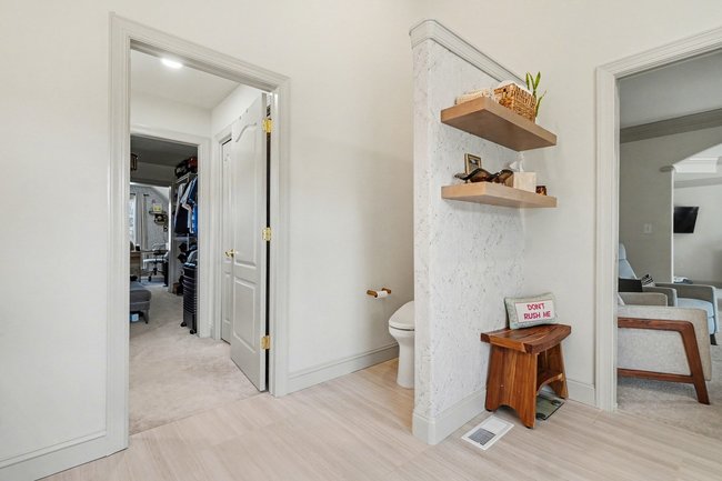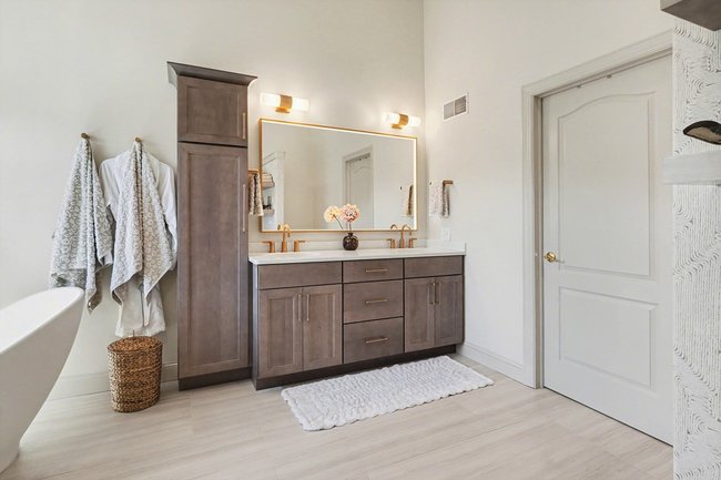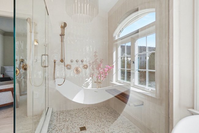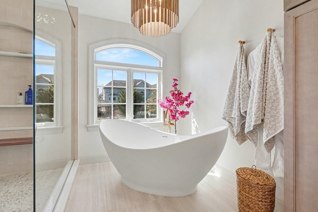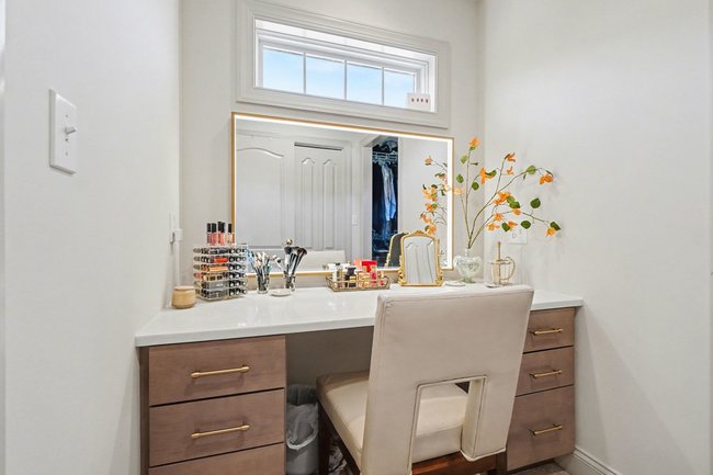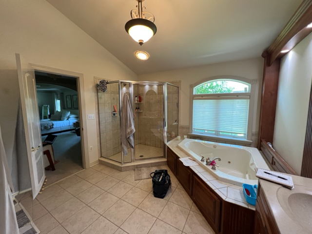 Transform your daily routine into a spa-like experience. In this Linglestown masterpiece, we replaced a dated corner tub with a sprawling custom tile shower and a sculptural Juliet Boutique pedestal air tub. No detail was overlooked, from the heated tile floors to the Moen Cia brushed gold body sprays and rain shower head. The custom makeup area is illuminated by designer lighted mirrors, while a teak floating bench adds a warm, organic touch to the shower. This is more than a bathroom; it’s a high-tech sanctuary designed for ultimate comfort and modern elegance.